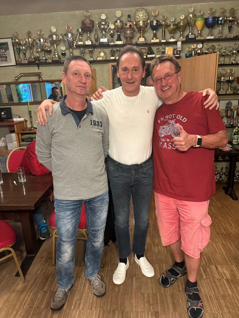 Das erste Doppelkopfturnier der Achterserie fand am Sonntag im Green Horse statt und hatte einen klaren Sieger. Steffen Reum (m.) gewann mit 2550 Punkten, deutlich vor Heiko Bonnawitz(l.) mit 2050 Spielpunkten. Für dem dritten Platz wurden Olaf Weber (r.) 1740 Punkte gut geschrieben. Es folgten Ralph Hildebrandt, Dirk Siebert und Volkard Vogt. Das nächste Turnier…