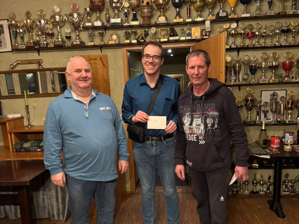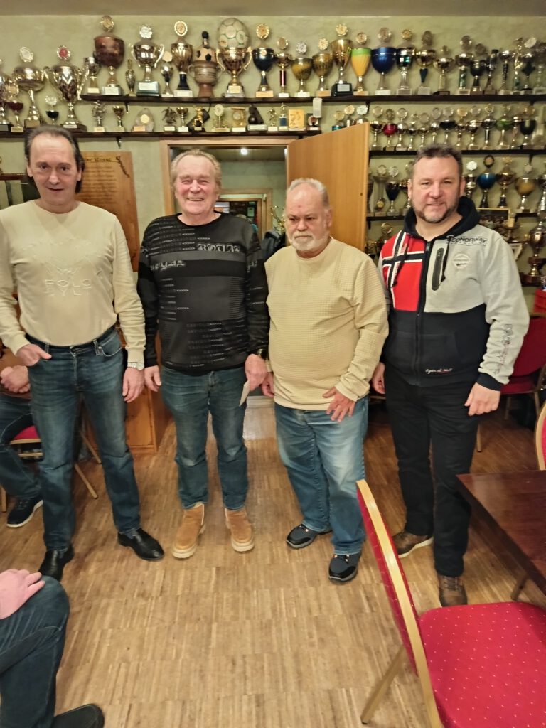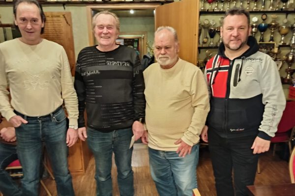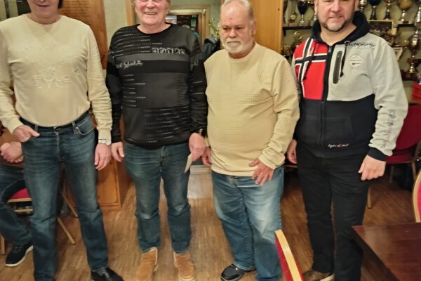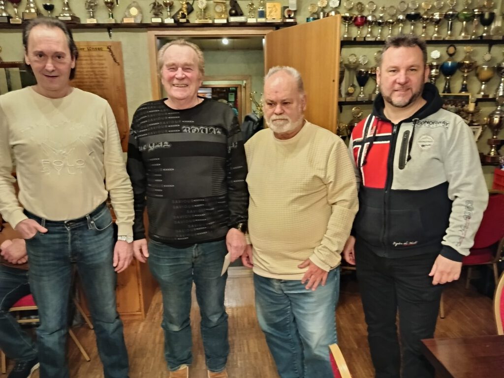 Das erste Doppelkopfturnier im neuen Jahr gewann Volkhard Vogt (m.) mit 2370 Punkten. Er distanzierte Marko Rexhäuser (l.) auf den Silberplatz mit 2330 Spielpunkte. Den Bronzerang sicherte sich mit 2120 Punkten Hartmut Kaiser (r.). Es folgten auf den Plätzen vier bis sechs Bernd Wey, Harry Laun und Ralph Hildebrandt. Das nächste Turnier wird am 08.02.26…