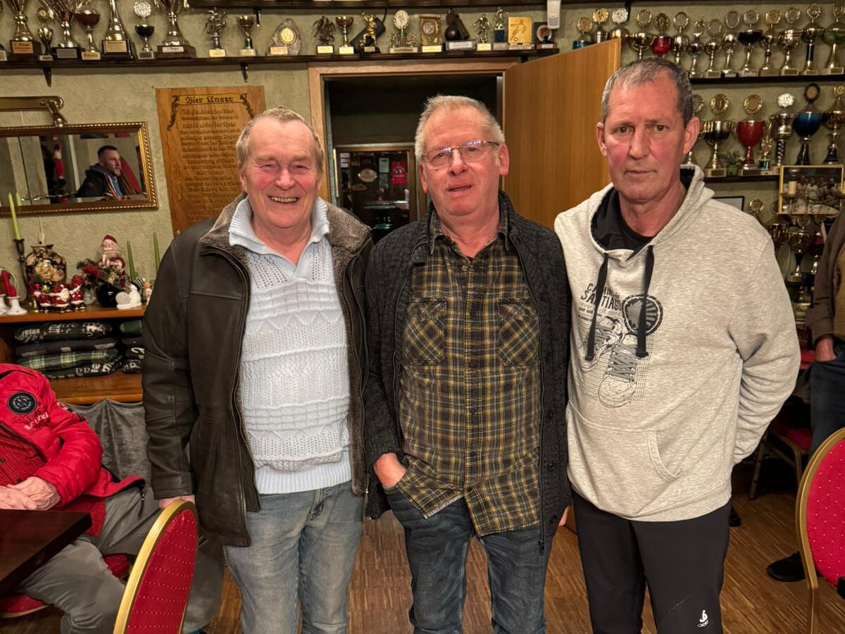 Das Weihnachtsturnier bestritten 15 Doppelkopf Kartenfreunde und es konnten sich alle über Geldpreise für Platz 1-3 und Sachpreise für 4-15 freuen. Ralph Hildebrandt ( m.) spielte zwei gleichmäßige Serien und gewann mit 2140 Punkten. Andreas Santi (r.) sicherte sich mit 1880 Spielpunkten Platz zwei. Den dritten Rang belegte Hartmut Kaiser (l.) mit 1810 Punkten. Das Neujahrsturnier wird am 04.01.2026 ab 13.30 Uhr im Green Horse gespielt. Die Spieltermine für Doppelkopf und Skat sind online auf der Homepage des FSV Silvester 91 abrufbar.