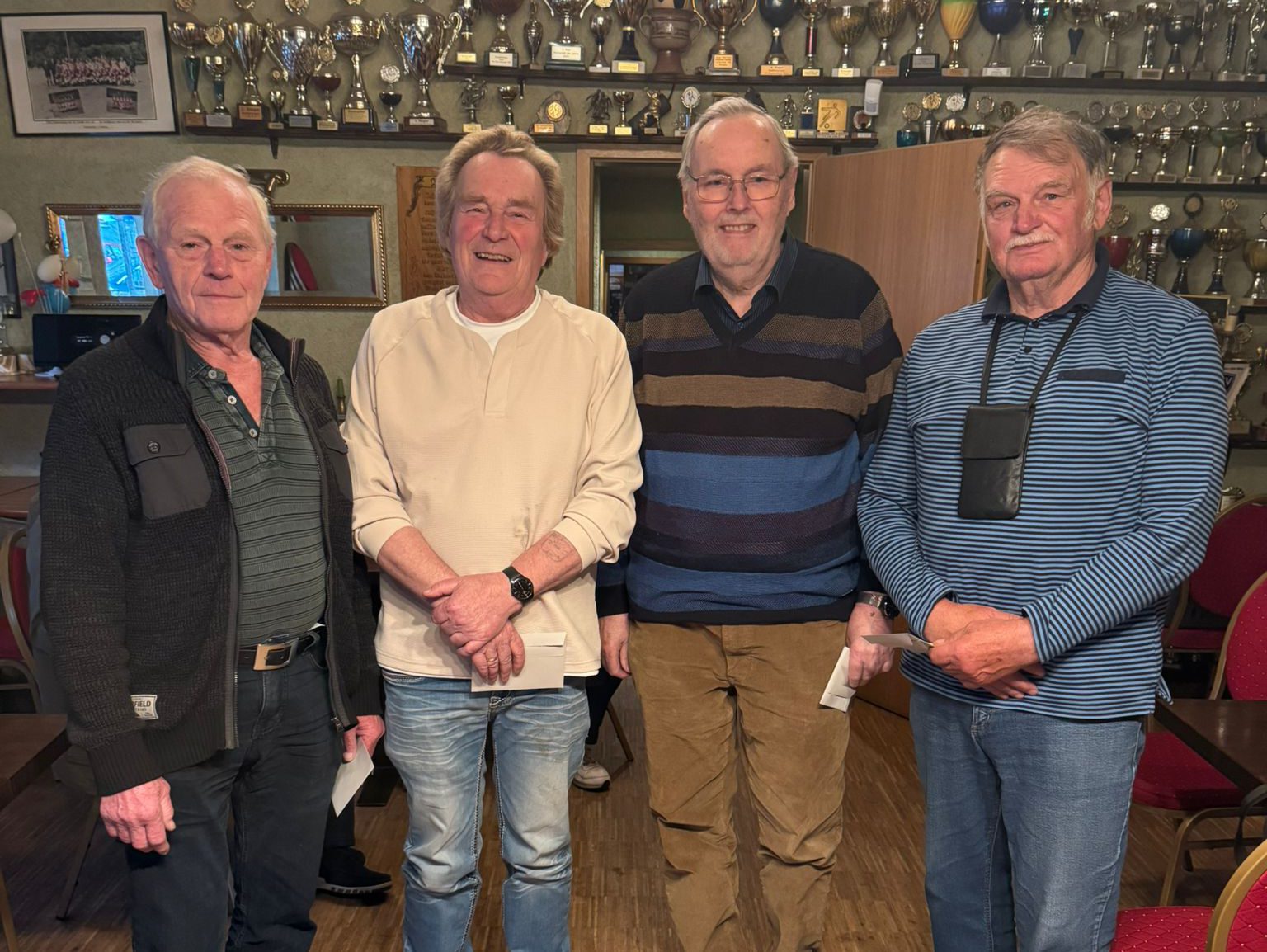 Das Einzelturnier entschied mit 2644 Punkten Eckard Röth (2.v.r.) für sich. Harald Mente (l.) belegte mit 1898 Punkten Rang zwei, dritter wurde Hartmut Kaiser (2.v.l.) mit 1850 Spielpunkten und Karl Heinz Heidinger (r.) belegte mit 18.04 Punkten den vierten Platz. Es folgten Helmut Scharfenberg und Andreas Santi.